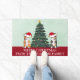 Deze prachtige Pembroke Welsh Corgi honden hebben hun hoofd gekanteld in een schattig Sinterklaas pet. De twee pups zitten voor een kerstboom op deze leuke aanpasbare vakantiedeurmat. Een heerlijke corgis welkomstdeurmat met een prachtige tekening van een driekleur en een rood-wit corgi paar.