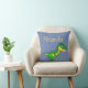 Dinosaurussen zijn terug. De Jurassic wezens zijn terug een schattig gepersonaliseerd gooi kussen. De Dinosaurus is groen en geel. De tekst is in een leuke jonge typografie Pas aan en maak het van jou. Een speciaal cadeau voor een jongensslaapkamer.