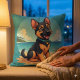 Dit schattige Duitse Herder-puppyontwerp legt de essentie van zorgeloze zomerdagen vast met zijn heldere, vrolijke expressie en prachtige tropische achtergrond. Tegenover een sereen uitzicht met palmbomen die in de wind wuiven, straalt dit kunstwerk avontuur en plezier uit. De warme goudkleurige tinten van het zand contrasteren prachtig met de diepblauwe tinten van het zee en de lucht, waardoor een harmonieus, visueel boeiend tafereel ontstaat. Perfect voor hondenliefhebbers, strandgangers en mensen die speelse maar toch kunstzinnige illustraties waarderen, dit stuk combineert kustesthetiek met een levendige charme van de cartoon. De energieke houding en expressieve blik van de pup belichamen opwinding en nieuwsgierigheid, waardoor het een heerlijke aanvulling is op elk collectie dat huisdieren, zomerse of zwerflust viert. Cartoon Of je nu aangetrokken wordt door levendige dierenartskunst, de esthetiek van de zonsondergang op de oceaan of gewoon van een vrolijk huisdier houdt, dit ontwerp brengt een scheut tropisch plezier naar elke ruimte. AI heeft kunstwerken gemaakt.