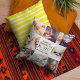 Een goed stevig kussen dat uitstekend past in ons Zen, maar toch kleurige interieur en een ander kussen van dezelfde ontwerper. Mooie kleuren, warmer dan op de afbeelding.