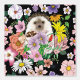 Een schattige egel die tussen kleurrijke zomerbloemen zit in de achtergrond van zwart
