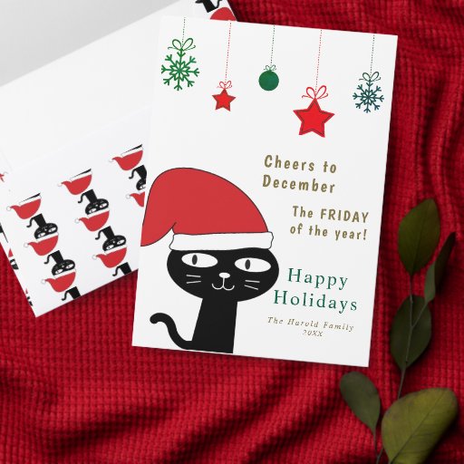 Festive Black Cat with Red Santa Hat Ontworpen door E A M