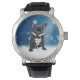 Schattigee Franse Bulldog Snow Stars Blue Christma Horloge