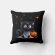 Schattigee Grappige Zwarte Kitten Halloween Trick or treat Sierkussen. Een leuk en spookachtig trick-or-treat t-shirt met een breed ogend, schattig maar eng kitten met een pure spookkostuum! De griezelige expressie en grillige outfit van het speelse kitten voegen een vleugje Halloween-charme toe.