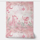 Schattige roze behang voor kinderkamer met een giraffe en een olifant, maan en sterren.