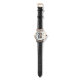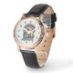 Een horloge met een kawaii illustratie van een uil met grote ogen in een winterjas en sjaal met een hete koffie.