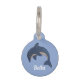 Dit label voor het identificeren van huisdieren is lichtblauw met een schattige springende glitterlook dolfijn die donkerblauw en wit is. Pas de naam van uw huisdier aan de voorkant en het jouw naam en telefoonnummer aan de achterkant aan met de sjablonen.