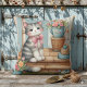 Dit charmante ontwerp is voorzien van een schattige grijze tabby cat met felle ogen en een roze gingham boog, zitten lief op een rustieke veranda omgeven door grillige details. De gezellige cottagecore-esthetiek wordt tot leven gebracht met zachte pastelbloemen in kruiken, geweven manden en schilderachtige schoenen die op houten trappen rusten. Omlijst door een kleurrijke patchwork quilt grens, de hele scène voelt als een momentopname van een rustige lente ochtend in een liefdevol samengesteld huis. Perfect voor iedereen aangetrokken tot pastel decor, shabby chique elegantie, of de warmte van nostalgische landschap beelden, dit kunstwerk voegt een gevoel van comfort en zachte vreugde waar het wordt weergegeven. De zachte waterverf kunststijl en de ingewikkelde details maken het ideaal voor het oproepen van de lente vibes en een gevoel van traag, gezellig leven. AI heeft kunstwerken gemaakt.