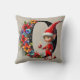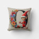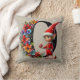 Schattige, kerstelf in feestelijke kledij met een monogram letter O versierd met florale decor en een faux, tan lederen achtergrond.