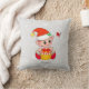 Schattigee kersteelf en kardinaal rode vogel op zilverkleurige Sierkussen.
