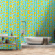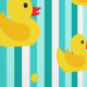 Kleurrijke kinderen badkamer of kinderkamer behang met schattige badtijd rubbers eenden over blauwe strepen