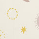 Schattige kosmisch ruimtepatroon met sterren, manen en zonnen op een crèmeachtergrond