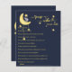 Deze baby shower game flyer is voorzien van een leuke baby olifant met een kleine vlinder onder de maan. U kunt de tekst personaliseren door op de knop "Personaliseren" te klikken en de kleur te wijzigen door op de knop "Bewerken met ontwerpgereedschap" te klikken. Fijne dag, mijn vriend!