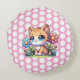 Schattigee Oranje Kitty Cat in Flowers gepersonali Rond Kussen