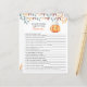 Een beetje pompoen is onderweg. Vier met deze baby cartoon pompoen thema voor baby shower feest! Waterverf schattige cartoon kawaii pompoen met herfstblad (pet) en herfstblad pet. Op de achterzijde van de kaart staan herfstbladeren.