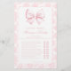 Sophisticated klassieker "Raad eens wie? Mama of papa" spel ontworpen voor een koket thema baby meisje douche, versierd met een charmante boog en bloemmotief aan de achterkant. Betrek uw gasten met dit heerlijke spel, perfect voor het toevoegen van plezier en opwinding aan uw feest terwijl u gekoesterde herinneringen creëert.