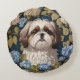 Schattigee Shih Tzu Puppy Blauwe hortensia bloemen Rond Kussen