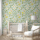 Schattigee Springtime Flowers & Birds op Soft Gree Behang