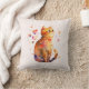 Kussen met een schattige waterverf illustratie. Een oranje tabby kat die er vriendelijk en blij uitziet met harten die ronddraaien.