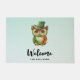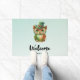 Een welkome deurmat met een prachtige grillige illustratie. Een grote ogige bruine uil met een fancy groene hoed en boog stropdas.