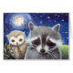 Schattigee Wasbeer en Uil Fantasy Art
