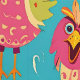Schattige behang voor wie van kippen houdt! Ai waterverf kippen in blauw, geel, roze en rood. Schattige Midwest of landbouwthema.