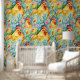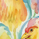 Schattige behang voor wie van kippen houdt! Ai waterverf kippen in blauw, geel en rood. Schattige Midwest of landbouwthema.