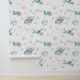 Schattigee Waterverf Planes Helikopters Clouds Boys Wallpaper heeft schattige helikopters en waterverven in de kleuren blauw en bruin met wolken op een witte achtergrond. Perfect voor jongensslaapkamers, kinderkamer decor, huis, kantoor en feestdecor. Creëer door Evco Studio www.zazzle.com/store/evcostudio