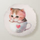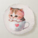 Schattigee wit-roze kat in een theekopje (2) rond kussen