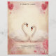 Elegant, rustiek en grillig briefhoofd met waterverf illustraties van witte zwaan en rode rozenbloemen op oude papieren achtergrond. Dit op liefde geïnspireerde notitieblok is perfect als een gepersonaliseerd geschenk.