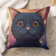 Een schattige artistieke voorstelling van een zwarte kat met expressieve amberkleurige ogen en gedetailleerde snorharen. Een perfect afbeelding om dierenliefde en kattencharme te vieren.