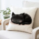 Dit schattige kussen is voorzien van een schattige zwarte kat slaapillustratie, ideaal voor het toevoegen van een vleugje gezelligheid aan uw interieur. Ideaal voor kattenliefhebbers, dit schattige dierenkussen maakt een prachtig cadeau. Het charmante ontwerp brengt een glimlach op ieders gezicht en is zeker een favoriete toevoeging aan elke kamer.