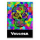 Grafisch van een grappige schedel met een kleurrijke papaverachtergrond