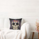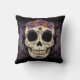 Mooie dag van de dode suikerschedel omgeven door paarse rozen. De achtergrondkleur van de verandering, of voegt tekst toe om dit kussen te personaliseren. Ziet er ook goed uit op donker paars!