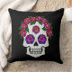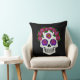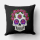 Een mooi kussen met gooi met een , handgetekende suikerschedel met rozen design. Perfect om uw huis te versieren voor Halloween en het griezelige seizoen.