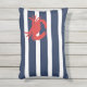 Scheepsnaam met marineblauwe strepen en rode krab buitenkussen