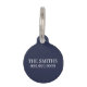 Houd uw huisdier veilig en nooit meer kwijt met deze zeevaart-huisdierlabel met witte anker en gepersonaliseerde naam van het huisdier in klassieke schreeflettertype op een marineblauwe achtergrond, met contactgegevens van de eigenaar op de achterkant.