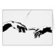 Een zwart-wit pop kunststijl versie van "De schepping van Adam", een deel van Michelangelo's schilderij op het plafond van de Sixtijnse Kapel. Het illustreert het Bijbelse verhaal uit het boek Genesis waarin God het eerste man, Adam, tot leven wekt.
