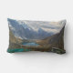 Een kussen met een mooie natuur foto. Met met sneeuw bedekte alpenbergen en rustige vijvers genesteld in de vallei van deze majestueuze bergen.