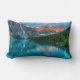 Een lumbaal kussen met een prachtige foto met een prachtige bergketen, grijze en roestkleuren. Een groen weelderig bos omringt een kalm helder meer. Prachtig afbeelding in de buitenlucht.