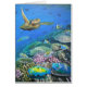 Zee schildpad zwemt boven koraalrif met parrotvis