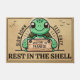 Krijg een stukje paradijs voor de deur! Deze charmante deurmat heeft een vrolijk grijnzende schildpad met een rustiek houten bord met de woorden "Welkom in het paradijs". Hieronder staat de geestige toevoeging "Rest in the Shell", die je gasten uitnodigt om met een knipoog te blijven hangen. Boven de schildpad is een sierlijke, eenvoudige boog, vergezeld van twee inspirerend boodschappen: "Slow Down" aan de linkerkant en "Feel Cozy" aan de rechterkant. De zon schijnt linksboven, terwijl vogels de hemel rechtsboven sieren - een perfect samenspel van sereniteit en natuurlijke idylle. Het ontwerp is betoverend met natuurlijke groene tinten voor de schildpad en een warme zandkleurige achtergrond. Deze humoristische en uitnodigende deurmat brengt charme en ontspanning in uw entree. Het is ideaal als een grappig cadeau voor vrienden, familie of gastheren of als een mooie decoratie voor uw eigen huis. Perfect voor iedereen die humor en gezelligheid waardeert!