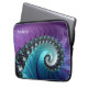 Dit prachtige persoonlijke laptophoesje is voorzien van een abstract spiraalvormig fractal in paarse en turkooisgranaten. Geweldig geschenk voor fractale liefhebbers, wiskunde studenten of docenten.