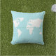 Schone witte wereldkaart op lichtblauw buitenkussen