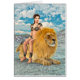 3D weergave van een mooie jonge vrouw en een leeuw op een woestijnlandschap achtergrond