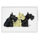 Drie vreemde Scotties. Ontwerp gemaakt van mijn oorspronkelijke schilderij en beschikbaar op kleding, huishoudartikelen en cadeautjes die zeker een hit zijn met elk Schots Hondenliefhebber.Scotties! Aroooo!