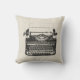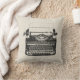 afbeelding voor schrijfmachines op faux canvas. In het Frans zijn de woorden "Het is een lang verhaal". De achterkant van de kussen heeft de vertaling.