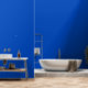 Minimalistische Blauwe effen effen WFH achtergrond of scherm Wallpaper rollen. Blauwe achtergrond voor zoom, video's, WFH, werk van home zoom kantoor achtergrond, blauw chroma scherm, chroma key achtergrond voor video's voor tijdelijke kantoor.