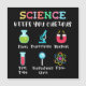 Playful science artwork made for curious kids and young students. Cute symbols like flask, microscope, magnet, test tube, magnifying glass and atom help children explore science in a fun and easy way. Ideal for school, learning and discovery.
