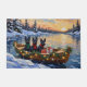 Bring spirited, distinctive charm to your holiday season with this adorable Black Scottish Terrier Christmas design! This magical scene features three cute, alert Black Scottish Terriers (Scotties) with their classic silhouette, sitting attentively in a cozy wooden boat, gently floating on a serene snowy lake at sunset. The boat is beautifully adorned with glowing Christmas string lights and fragrant pine garlands, while the dogs wear festive scarves. They are surrounded by colorful wrapped presents and cheerful holly branches. Soft snowflakes gently fall, and the shimmering reflection of the lights on the water creates a truly magical winter holiday atmosphere. This design is a perfect Christmas gift for any Scottish Terrier owner, dog lover, or admirer of festive and unique terrier art, capturing the serene joy of the season.